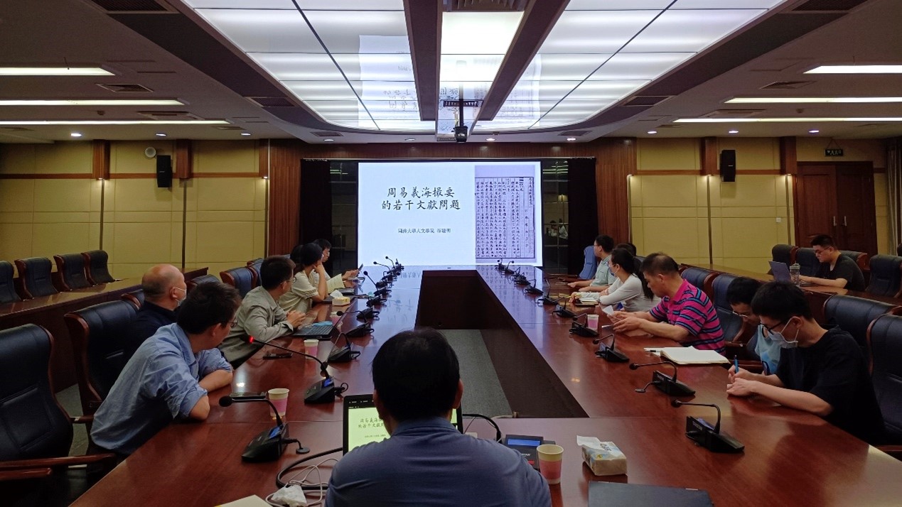 2023年5月14日下午3:00,由华中师范大学历史文化学院、历史文献学研究所及“文献学与经学史”研究群主办的第五期“舜徽讲坛·学术讲座”,在逸夫会议中心二楼会议室顺利举行。讲座以“《易》学文献问题的特点——以《周易义海撮要》为例”为主题,由同济大学人文学院谷继明教授主讲。讲座由华中师范大学历史文献所樊宁老师主持,历史文献学研究所张固也教授、黄珏教授、黄政副教授出席了本次。