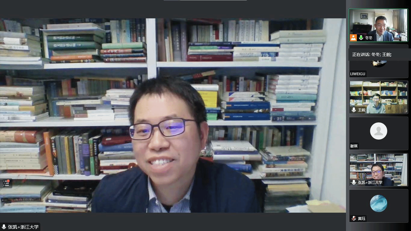 2022年11月3日下午三点,由华中师范大学历史文献学研究所及“文献学与经学史”研究群主办的第九期“舜徽讲坛·学术论坛”,在腾讯会议线上顺利举行。讲座以“经史分合与近代‘国史’叙述”为主题,由浙江大学历史学院张凯教授主讲。华中师范大学历史文献学研究所陈冬冬副教授主持讲座,陈冬冬副教授、华东师范大学历史学系王锐副教授参与与谈。华中师范大学历史文献学研究所黄珏教授、黄政副教授、华中师范大学历史文化学院王闯副教授、古丽巍副教授、承红磊副教授、谢祺副教授、杨瑞老师、张照阳老师线上参与了讲座。